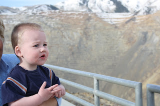 We also went to Kennecott Copper Mine. Everyone loved that, especially Ethan who wanted the trucks soooo bad!!! He kept pointing at the trucks when we were outside looking at the mine and then when we went inside the visitors center he was using all his strength to try and push open the display cases (which don't open) to try and get the model trucks and tractors out. Poor boy, he was so frustrated!!!